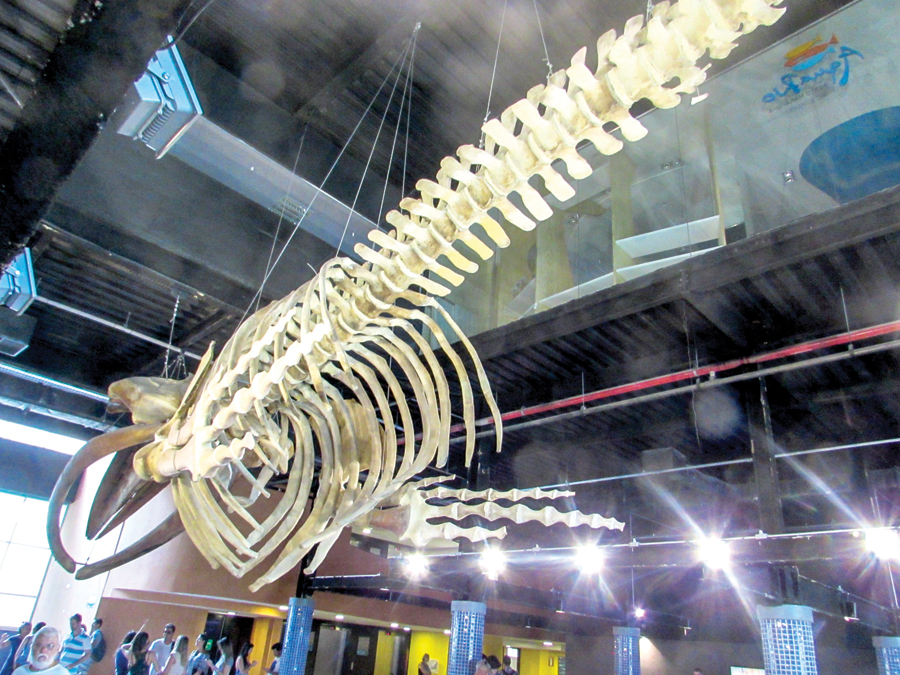 Logo na entrada, o gigantesco esqueleto de uma baleia jubarte – de 13 metros de comprimento e 37 toneladas – dá as boas-vindas aos visitantes. Ela ficou encalhada na Praia da Macumba em 2014.
