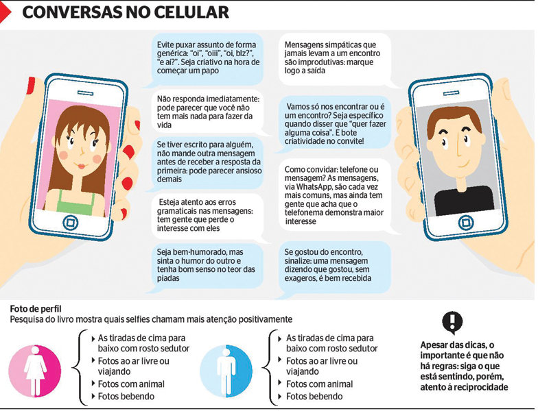 Para responder a estas questões, o ator americano Aziz Ansari e o sociólogo Eric Klinenberg escreveram o livro ‘Romance moderno’, recém-lançado no Brasil. Nele, há dicas de como não passar a impressão de ‘carência’, além de algumas táticas para se dar bem na comunicação virtual.