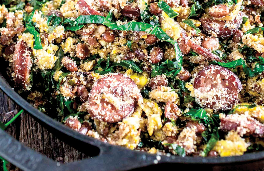• Junte o feijão, as carnes, a couve, a pimenta e mexa delicadamente