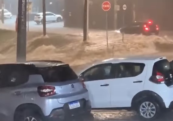 Em outras regiões da cidade, os relatos são ruas se transformando em rios e carros enfrentando a enxurrada.