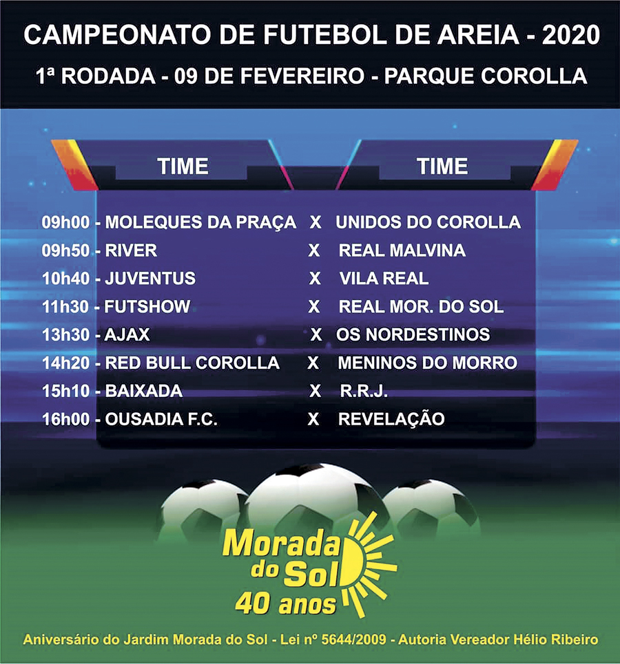 Porém, antes de março, a festa dá, literalmente, o pontapé inicial neste fim de semana. É que começa domingo, dia 9, o Campeonato de Futebol de Areia.