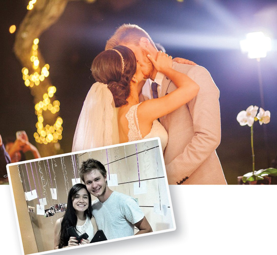 “‘Eu escolhi esperar’. Após um ano e três meses de namoro com Leonardo, demos, no altar, o nosso primeiro beijo, já como marido e mulher. Tive dois namoros, até que, aos 19 anos, me converti à Igreja Evangélica Verbo da Vida e prometi a mim mesma que me guardaria, por inteiro, para a pessoa certa. Estava cansada dos relacionamentos rápidos, descartáveis, queria algo definitivo. Leonardo frequentava os cultos e partilhava das mesmas ideias que eu. Como no nosso namoro não tinha beijo, aproveitamos todo o tempo juntos para nos conhecermos na alma. Evitávamos a tentação não ficando a sós. Quando parecia irresistível, orávamos. No dia do casamento, a ansiedade era enorme, não só a nossa como a de todos os convidados. E foi algo sobrenatural. Do meu primeiro beijo na vida eu não me lembro, mas esse com o Leo foi o que valeu, é eterno.”
