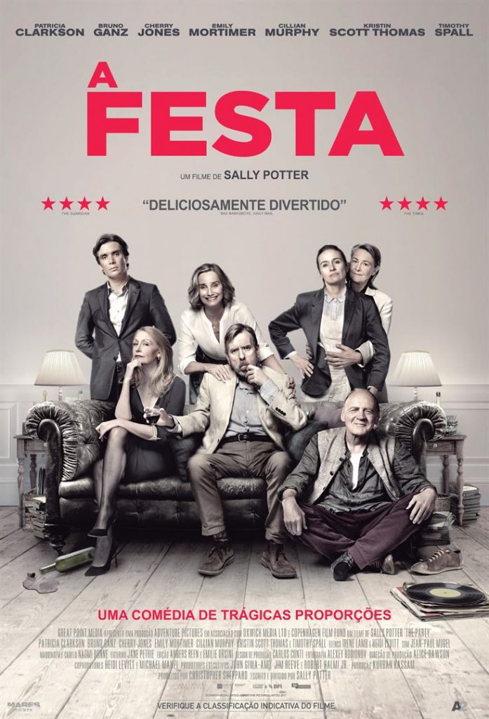 Na próxima terça-feira, 09 de outubro, o Topázio Cinemas irá exibir o filme A Festa, da diretora britânica Sally Potter (de Ginger & Rosa). O longa-metragem apresenta Janet (Kristin Scott Thomas), uma política de esquerda que convida os amigos do partido para comemorar a sua escolha para o cargo de Ministra da Saúde britânica, coroando um objetivo que ela perseguia há anos. Os amigos – e penetras – também têm suas revelações, como uma gravidez inesperada. Mas é a surpresa revelada pelo marido de Janet, o intelectual Bill (Timothy Spall), que transforma completamente o clima da celebração.
