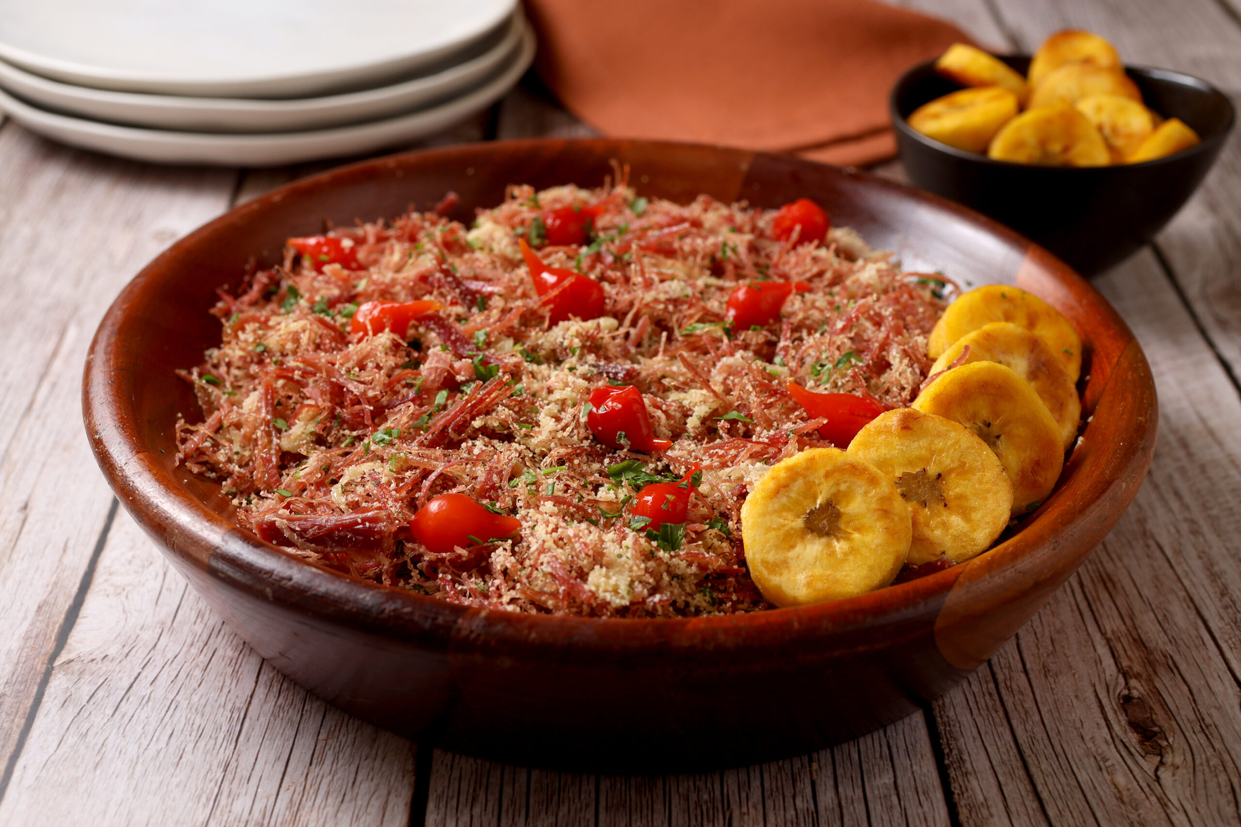 Carne seca e banana da terra em uma Paçoca Nordestina